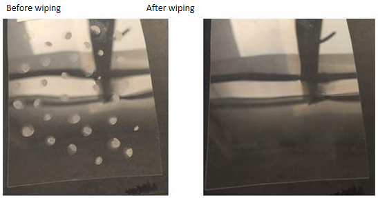 The anti-fouling properties of the same coating on different films are obviously different, and the overall trend is that the anti-fouling properties of the films with high stretch strength are slightly worse, and the anti-fouling properties of the films with low stretch strength are better. |