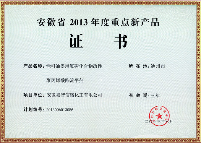 安徽省重點新產品證書2